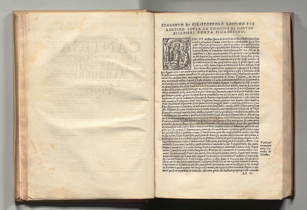 [TGL A100:1760] Comento di Christophoro Landino fiorentino sopra la comedia di Danthe Alighieri poeta fiorentino, Et impresso in Firenze, per Nicholo di Lorenzo della Magna, a di XXX dagosto 1481