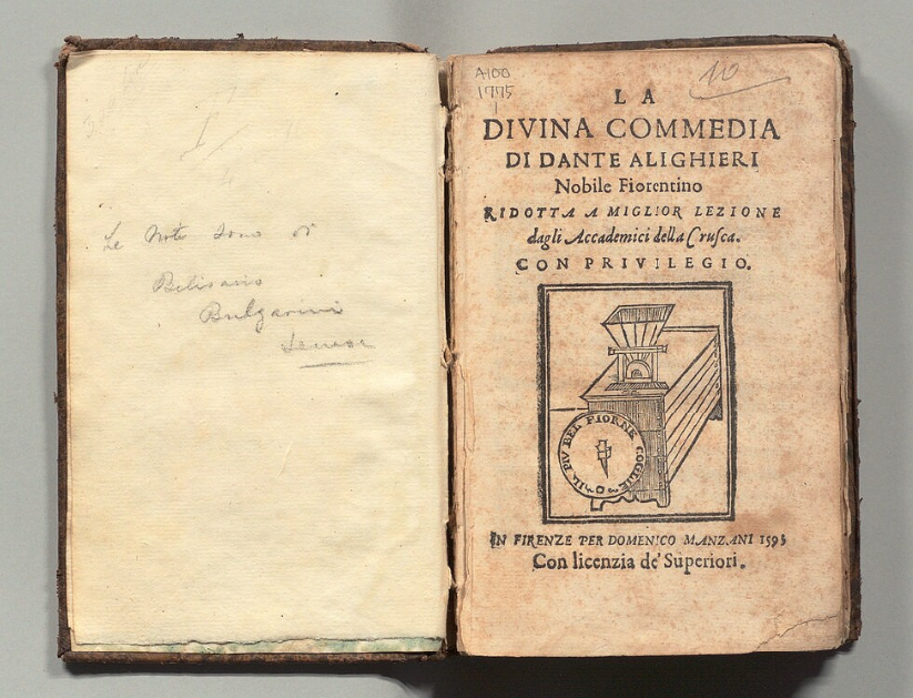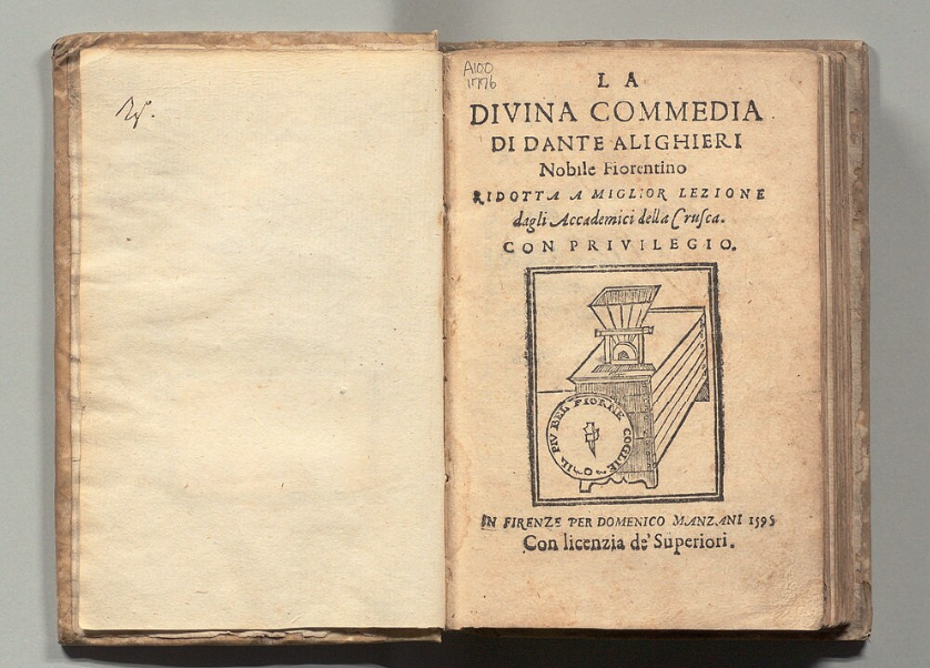 [TGL A100:1776] La Divina Commedia di Dante Alighieri Nobile Fiorentino ridotta a miglior lezione dagli Accademici della Crusca, In Firenze, per Domenico Manzani, 1595