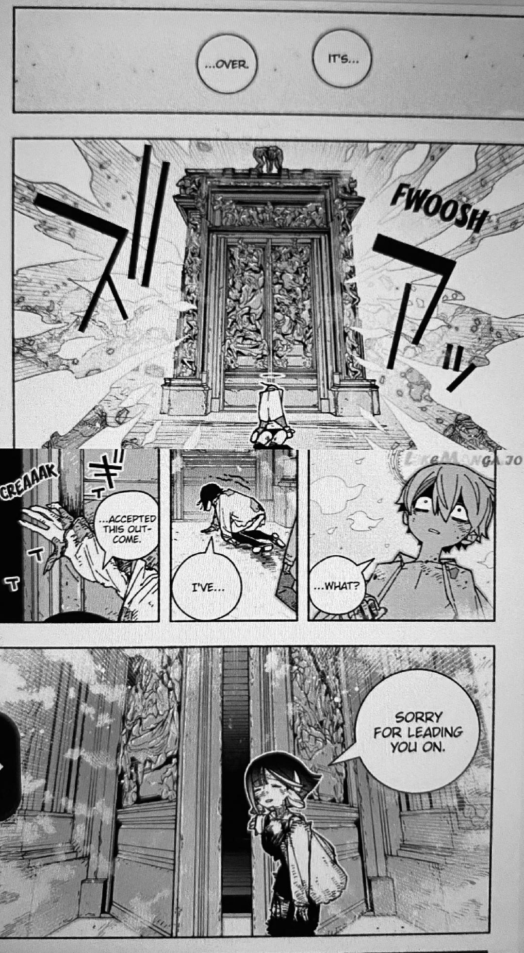 Make the Exorcist Fall in Love intreccia volutamente azione, occulto e suggestioni religiose in un contesto narrativo cupo e sovrannaturale. Fin dal primo capitolo del manga (Ama il tuo prossimo, 汝の隣人を愛せよ, Nanji no rinjin o aiseyo, pubblicato il 2 maggio 2022), l’opera introduce un immaginario infernale denso di simbolismo, ricorrendo alla Porte de l’Enfer di Auguste Rodin, ispirata alla Commedia dantesca, come soglia tra il mondo umano e le forze demoniache. Questo motivo visivo e tematico riaffiora in più momenti della vicenda – ad esempio nel capitolo 52 (Onnipotenza, 全能, Zen'nō, 4 gennaio 2024) –, rafforzando il legame tra l’esorcismo e l’idea di condanna eterna. La porta diventa così emblema di passaggio, ma anche di perdizione, assurgendo a immagine chiave nello sviluppo del protagonista e nell’ascesa del conflitto contro il male.