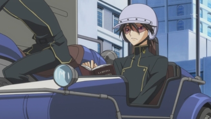 Nel primo episodio, durante la scena in cui Lelouch Lamperouge si trova in un sidecar diretto verso la Torre di Babele, in un frame si intravede distintamente che il personaggio sta leggendo Purg. XXII. La scelta di citare il Purgatorio in questo momento della narrazione non è casuale poiché Lelouch ha perso la memoria dei suoi peccati e si trova simbolicamente separato dalla verità e in cerca di un nuovo senso da dare alla sua vita.